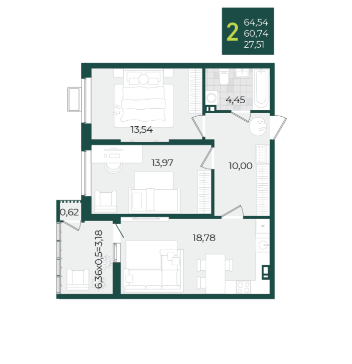 Продается 2-х комн. новостройка, 64.54 кв.м., 6/21 эт