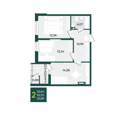 Продается 2-х комн. новостройка, 55.64 кв.м., 8/21 эт