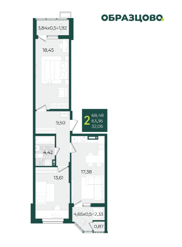 Продается 2-х комн. новостройка, 69 кв.м., 2/21 эт