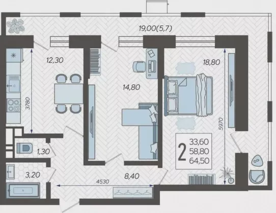Продается 2-х комн. новостройка, 64.7 кв.м., 10/12 эт