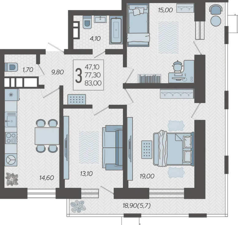 Продается 2-х комн. новостройка, 83 кв.м., 7/12 эт