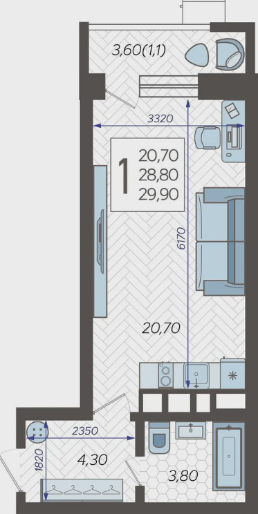 Продается Студия новостройка, 29.9 кв.м., 7/12 эт