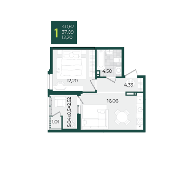 Продается однокомнатная новостройка, 40.62 кв.м., 16/21 эт