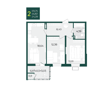 Продается 2-х комн. новостройка, 59.75 кв.м., 10/21 эт