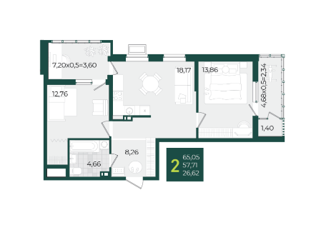 Продается 2-х комн. новостройка, 65.05 кв.м., 10/18 эт