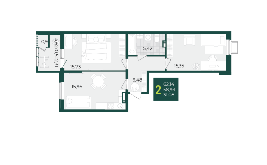 Продается 2-х комн. новостройка, 62.14 кв.м., 8/21 эт