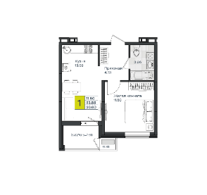 Продается однокомнатная новостройка, 40.59 кв.м., 7/8 эт