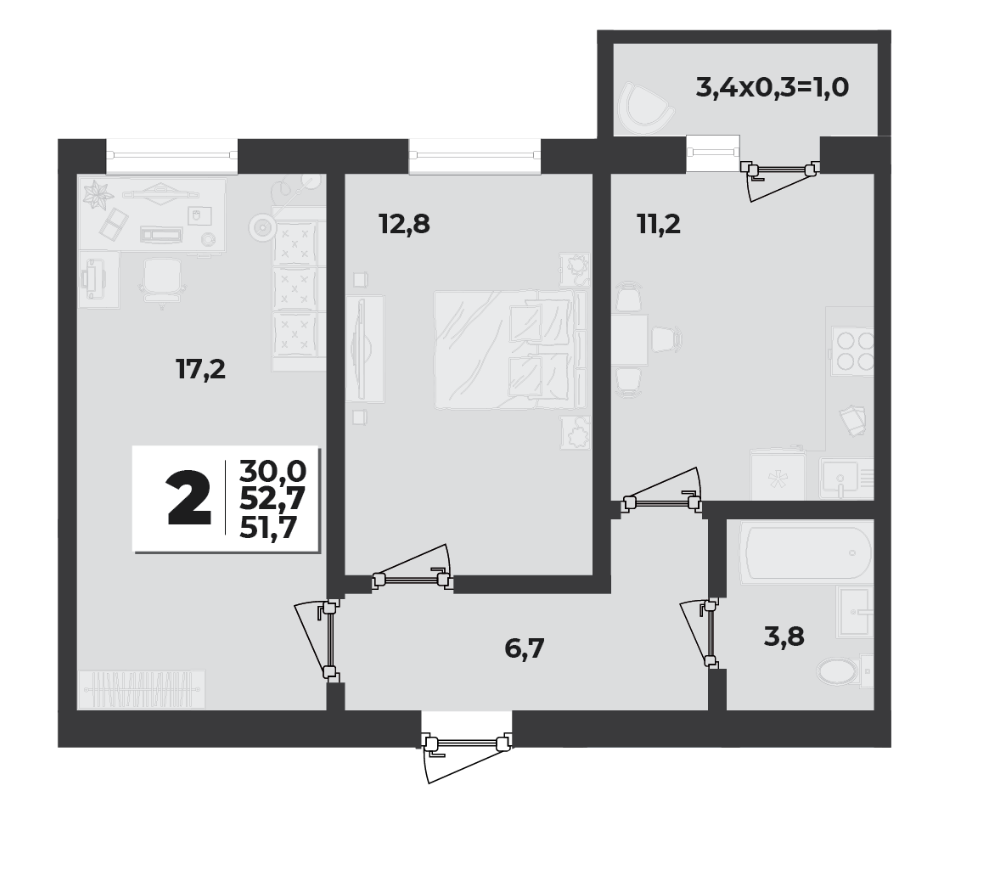 | Площадь кухни, кв.м. | 17.2 |