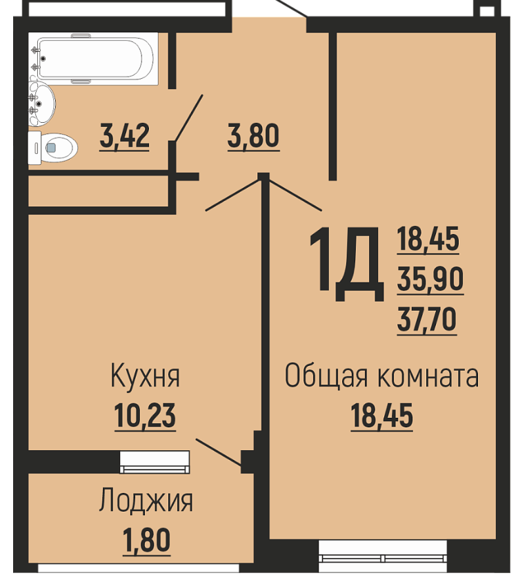 Продается однокомнатная новостройка, 38 кв.м., 15/24 эт