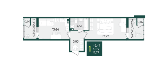 Продается однокомнатная новостройка, 48.5 кв.м., 16/21 эт