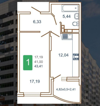 Продается однокомнатная новостройка, 38.88 кв.м., 14/21 эт