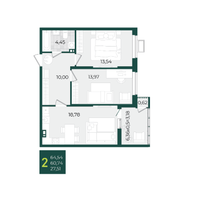 | Площадь, кв.м. | 64.54 |