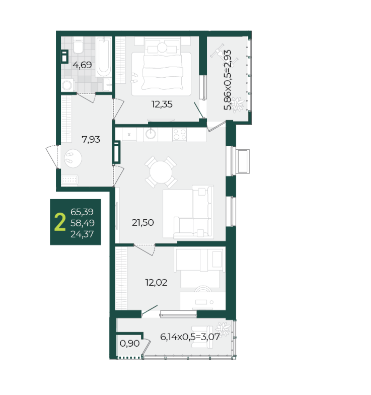 Продается 2-х комн. новостройка, 65.39 кв.м., 17/21 эт