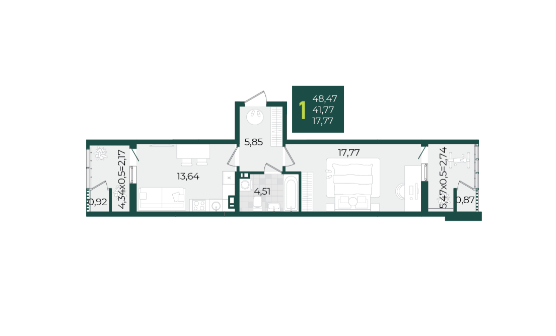 Продается однокомнатная новостройка, 48.47 кв.м., 11/21 эт