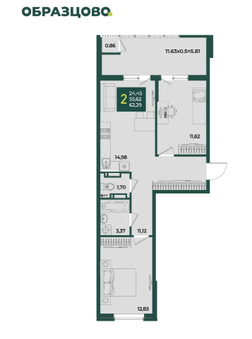 Продается 2-х комн. новостройка, 62.29 кв.м., 8/21 эт