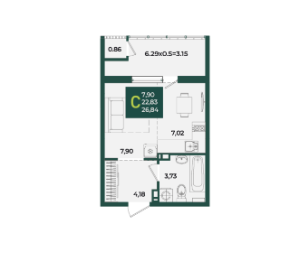 Продается Студия новостройка, 26.84 кв.м., 15/21 эт