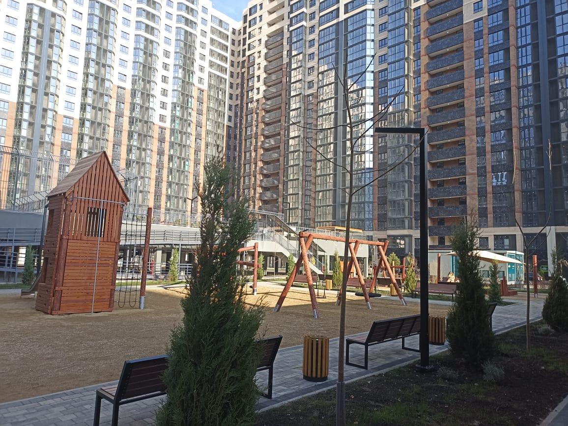 Новый микрорайон построен по принципу комплексной застройки, что обеспечивает комплексное благоустройство: школа, четыре детских сада, поликлиника, парковая зона, прогулочные аллеи, детские и спортивные площадки, а также тематические зоны отдыха для взрослых и детей всех возрастов.