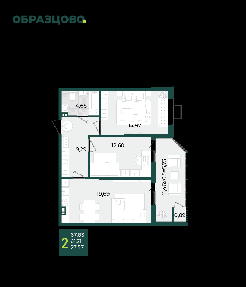 Продается 2-х комн. новостройка, 68 кв.м., 9/21 эт