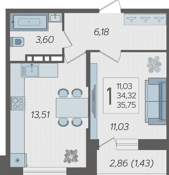Продается 2-х комн. новостройка, 35.75 кв.м., 7/19 эт