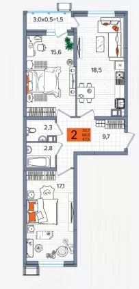 Двухкомнатная квартира в комплексе класса комфорт+.