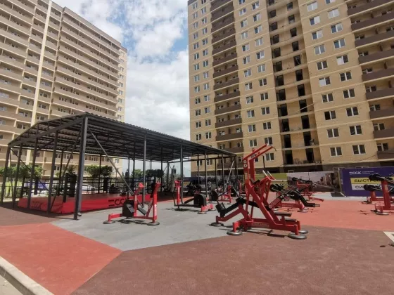 На территории микрорайона множество детских и спортивных площадок на любой вкус - от тренажеров и футбольных полей до теннисных кортов и боксерского ринга!