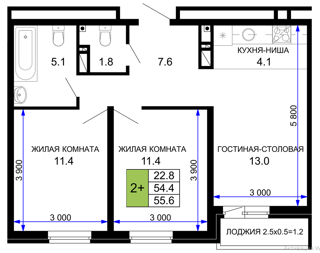 Продается 2-х комн. новостройка, 56 кв.м., 6/16 эт