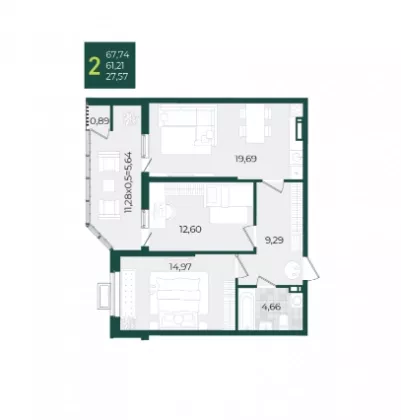 | Комнат в квартире | 2 |