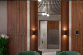Дом построен по монолитно-кирпичной технологии с использованием высококачественных материалов. Доступ в подъезды осуществляется по системе Face ID, а входные группы оформлены в современном стиле с уютными зонами отдыха, обставленными мягкой мебелью. В каждом подъезде есть три лифта, а на этаже расположено от 3 до 6 квартир. Кроме того, предусмотрен консьерж-сервис и просторные помещения для колясок, велосипедов и самокатов. Во дворе находится стилобат с зонами для отдыха и спортивными площадками.