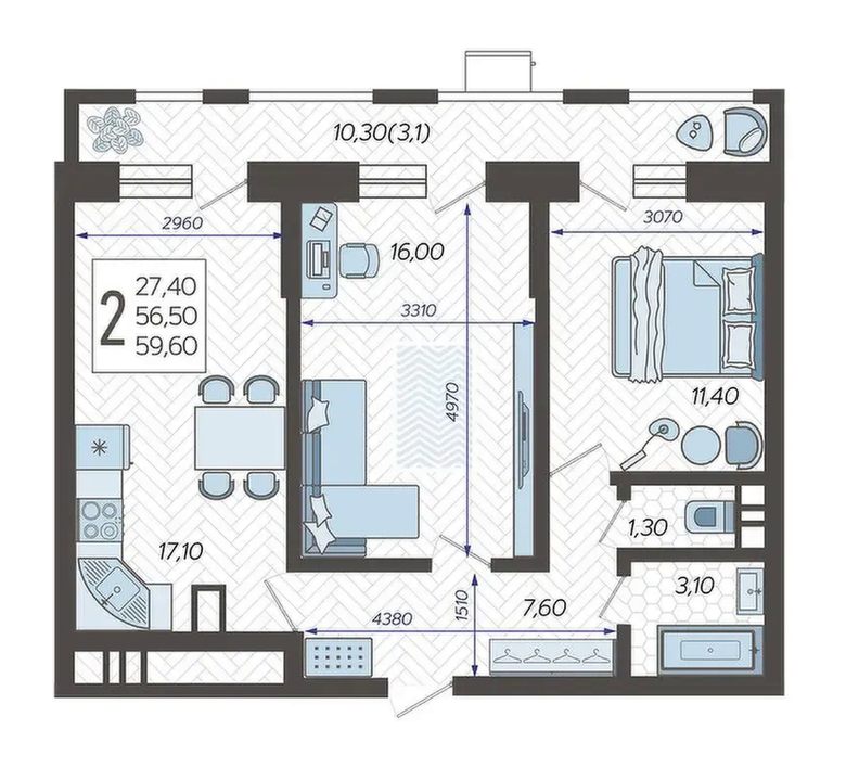 | Площадь, кв.м. | 59.6 |