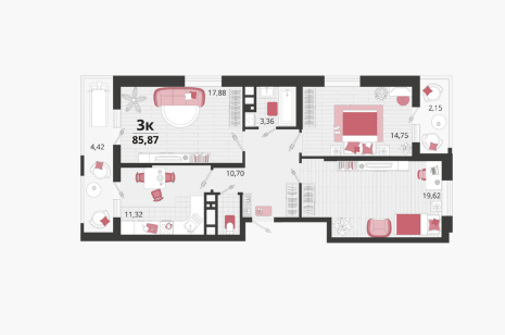 Продается 3-х комн. новостройка, 85.87 кв.м., 17/18 эт