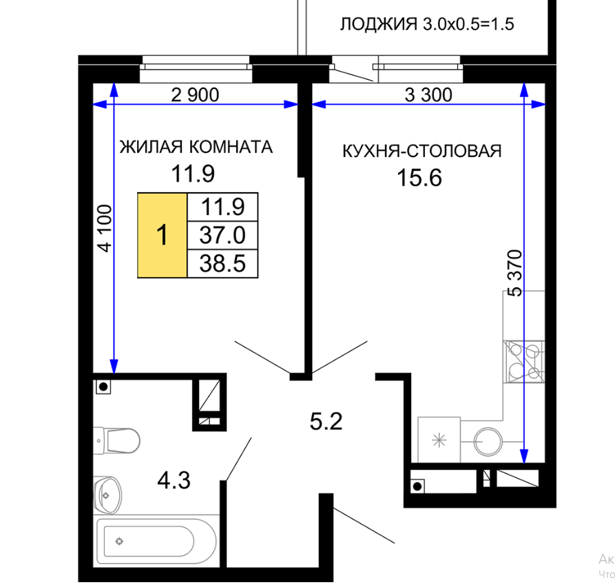 | Площадь, кв.м. | 38.5 |