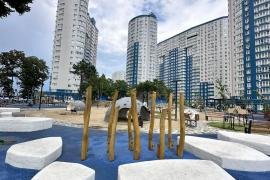 Современные детские площадки с тематическими Арт-объектами, прогулочные зоны, футбольная и волейбольные площадки, памп-трек на территории комплекса.