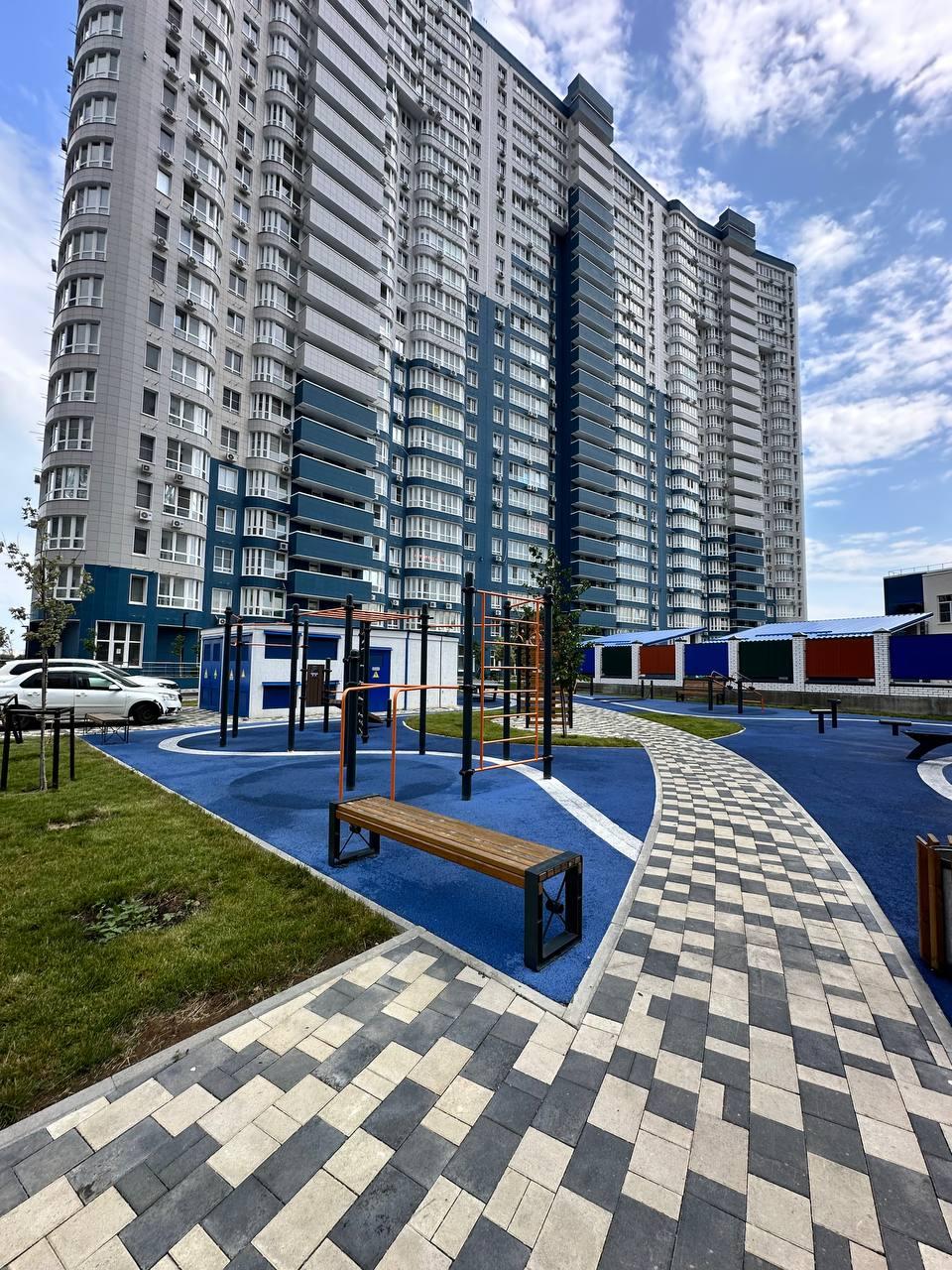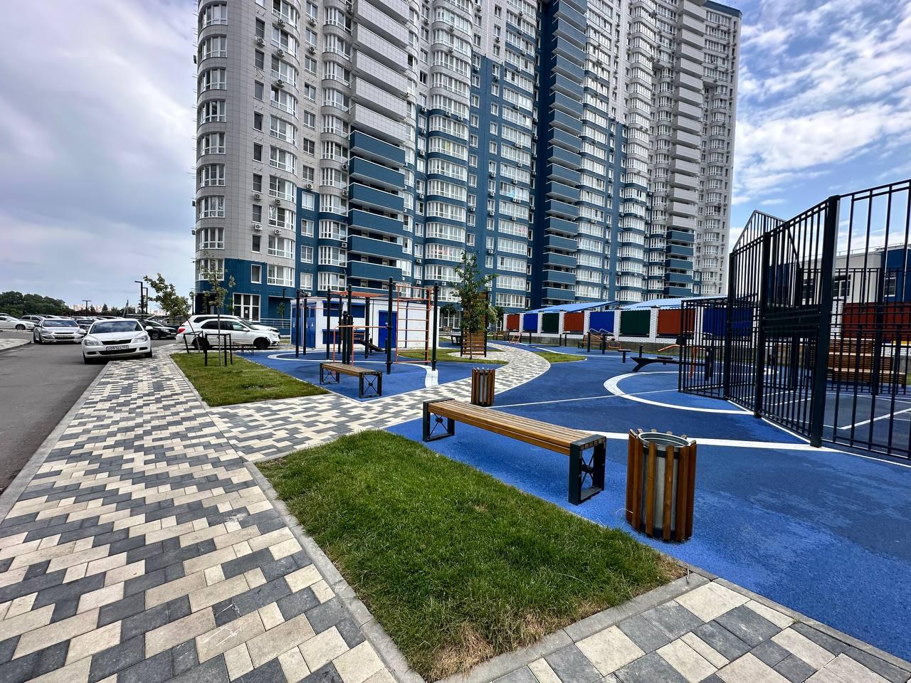 Современные детские площадки с тематическими Арт-объектами, прогулочные зоны, футбольная и волейбольные площадки, памп-трек на территории комплекса.