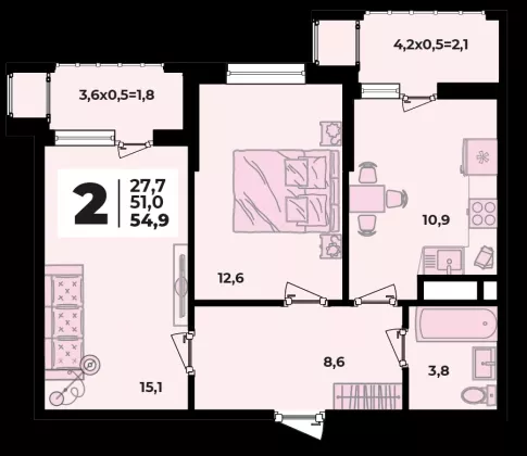 Двухкомнатная квартира в современном жилом комплексе комфорт-класса. Дом уже сдан. Подходит под семейную ипотеку с процентной ставкой 6% (при наличии одного ребенка до 7 лет или двух детей до 18 лет).