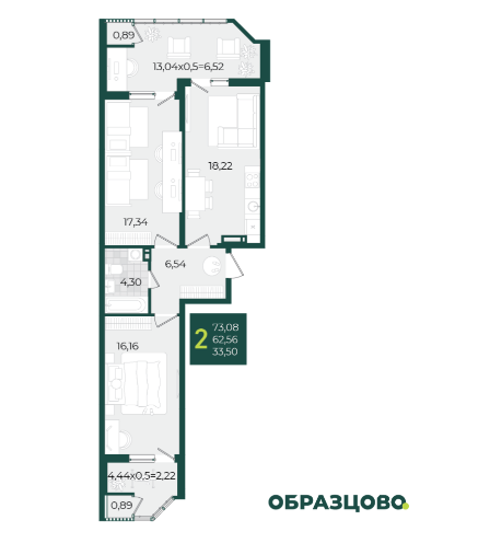 Продается 2-х комн. новостройка, 73.9 кв.м., 8/21 эт