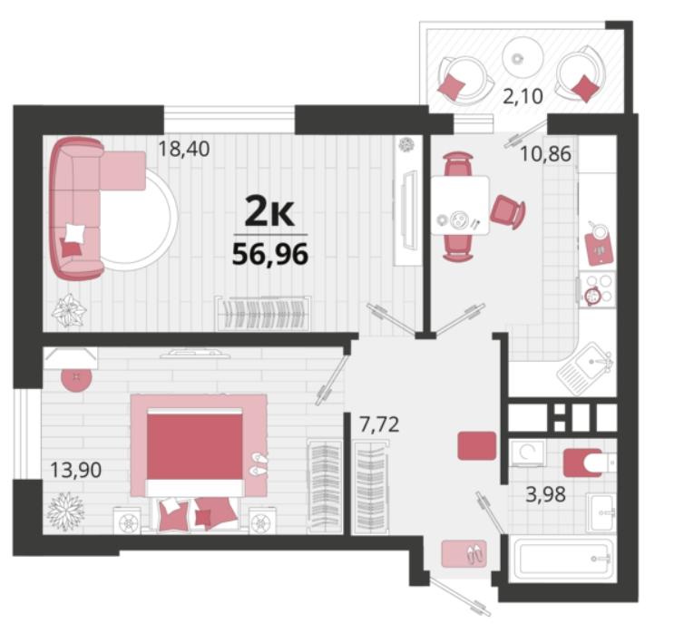 Продается 2-х комн. новостройка, 57 кв.м., 2/18 эт
