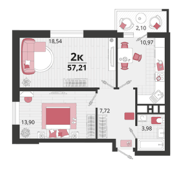 Продается 2-х комн. новостройка, 57.21 кв.м., 12/21 эт