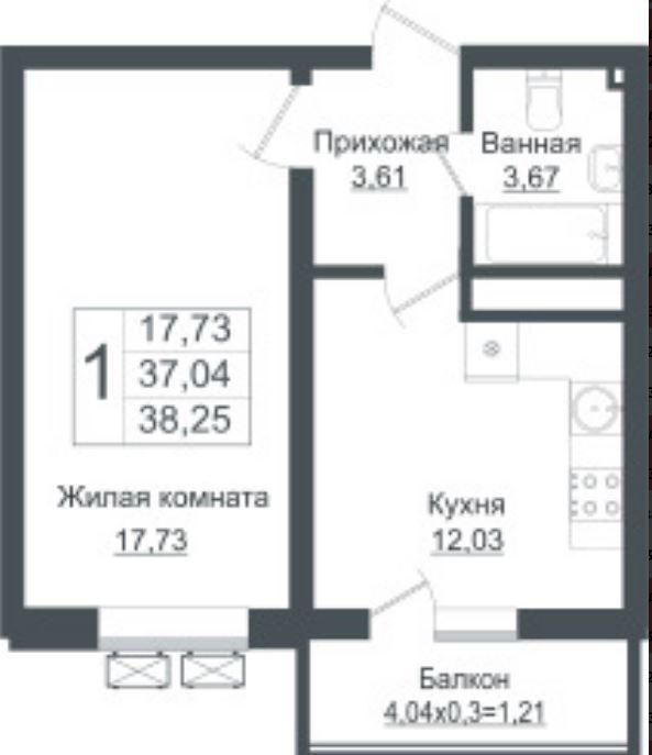Продается однокомнатная новостройка, 38.25 кв.м., 12/16 эт