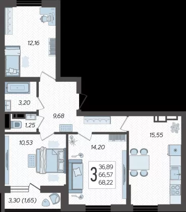 Продается 3-х комн. новостройка, 69 кв.м., 3/16 эт
