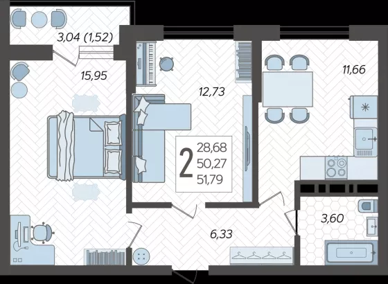 Продается 2-х комн. новостройка, 52 кв.м., 13/16 эт