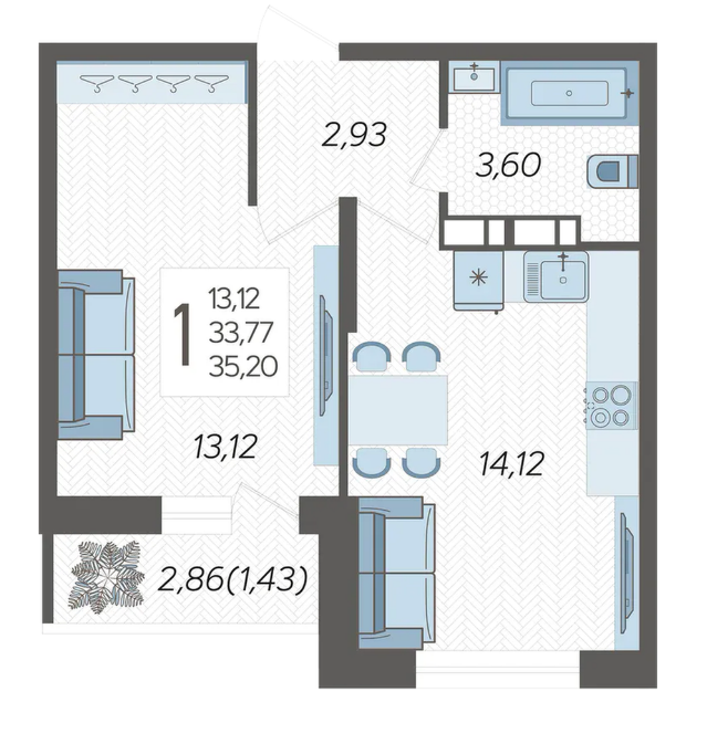 Продается однокомнатная новостройка, 35.2 кв.м., 17/19 эт