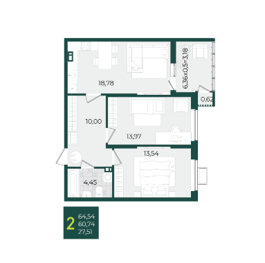 Продается однокомнатная новостройка, 64.54 кв.м., 19/21 эт