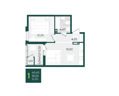 Продается однокомнатная новостройка, 40.45 кв.м., 12/21 эт