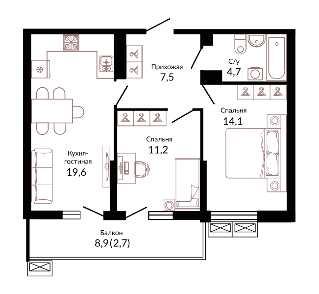 Продается 2-х комн. новостройка, 59.2 кв.м., 19/22 эт