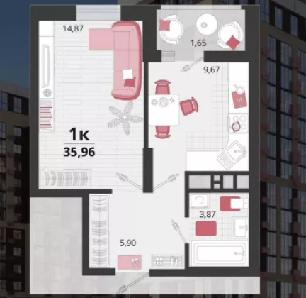 Продается однокомнатная новостройка, 35.96 кв.м., 5/21 эт