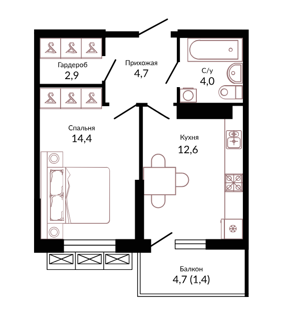 | Площадь, кв.м. | 41.4 |