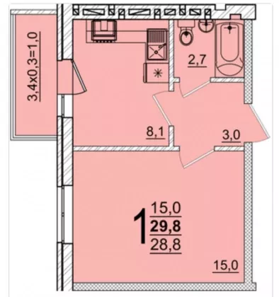 | Площадь, кв.м. | 29.8 |