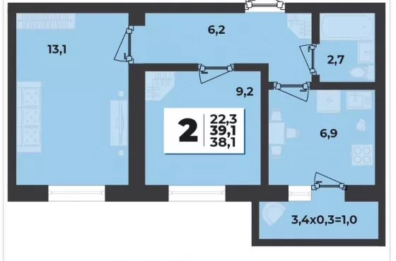 Продается 2-х комн. новостройка, 40 кв.м., 2/5 эт