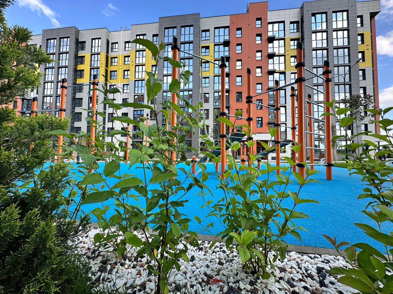 Благоустроенная придомовая территория, детские игровые площадки, спортивные площадки с безопасным покрытием для командных игр, зоны отдыха с арт-объектами.