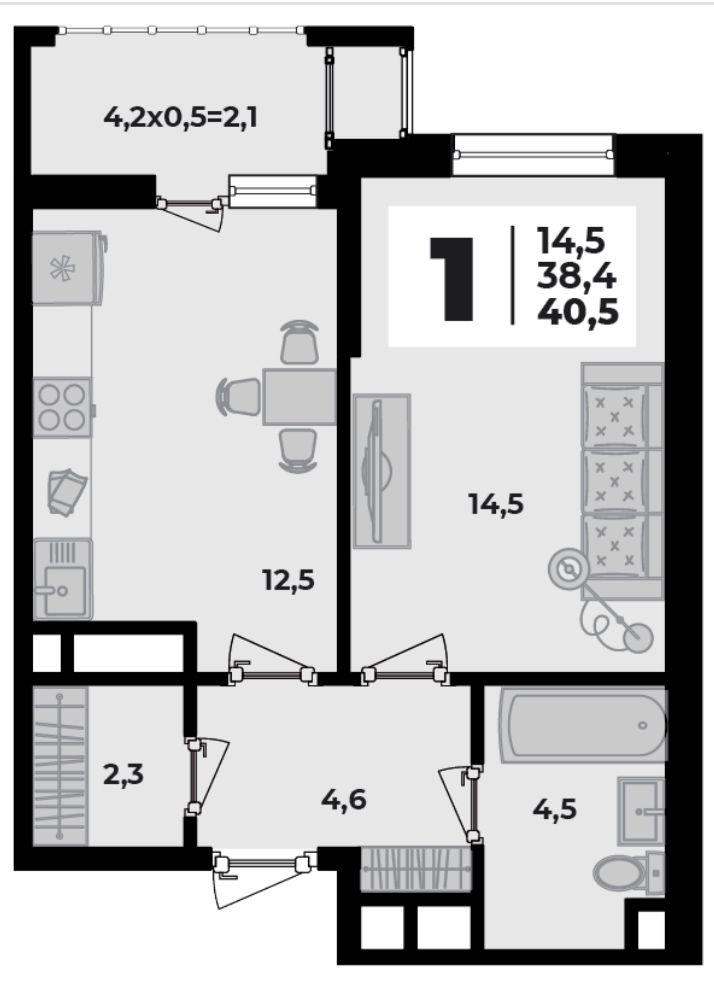 Продается однокомнатная новостройка, 40.5 кв.м., 2/8 эт